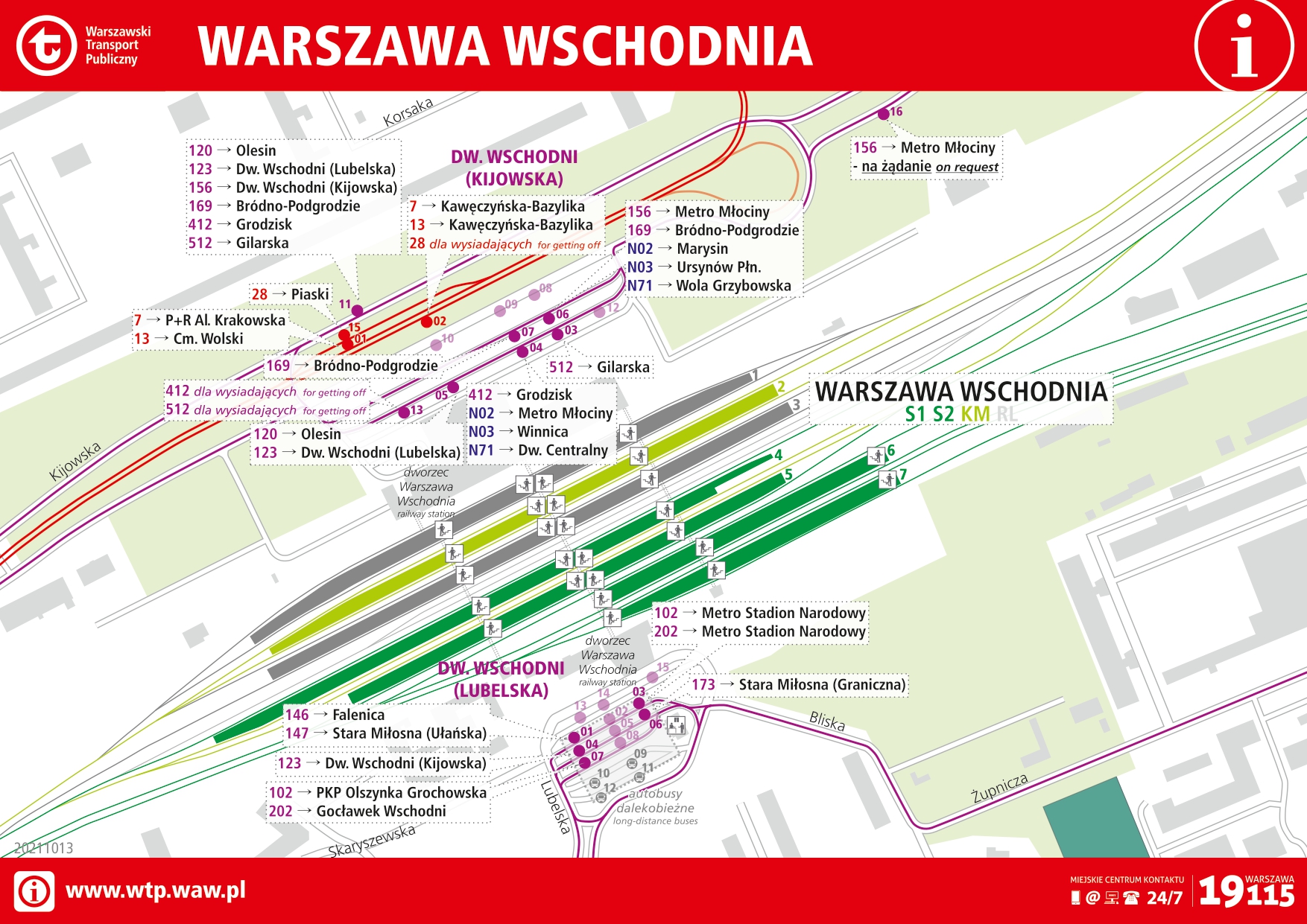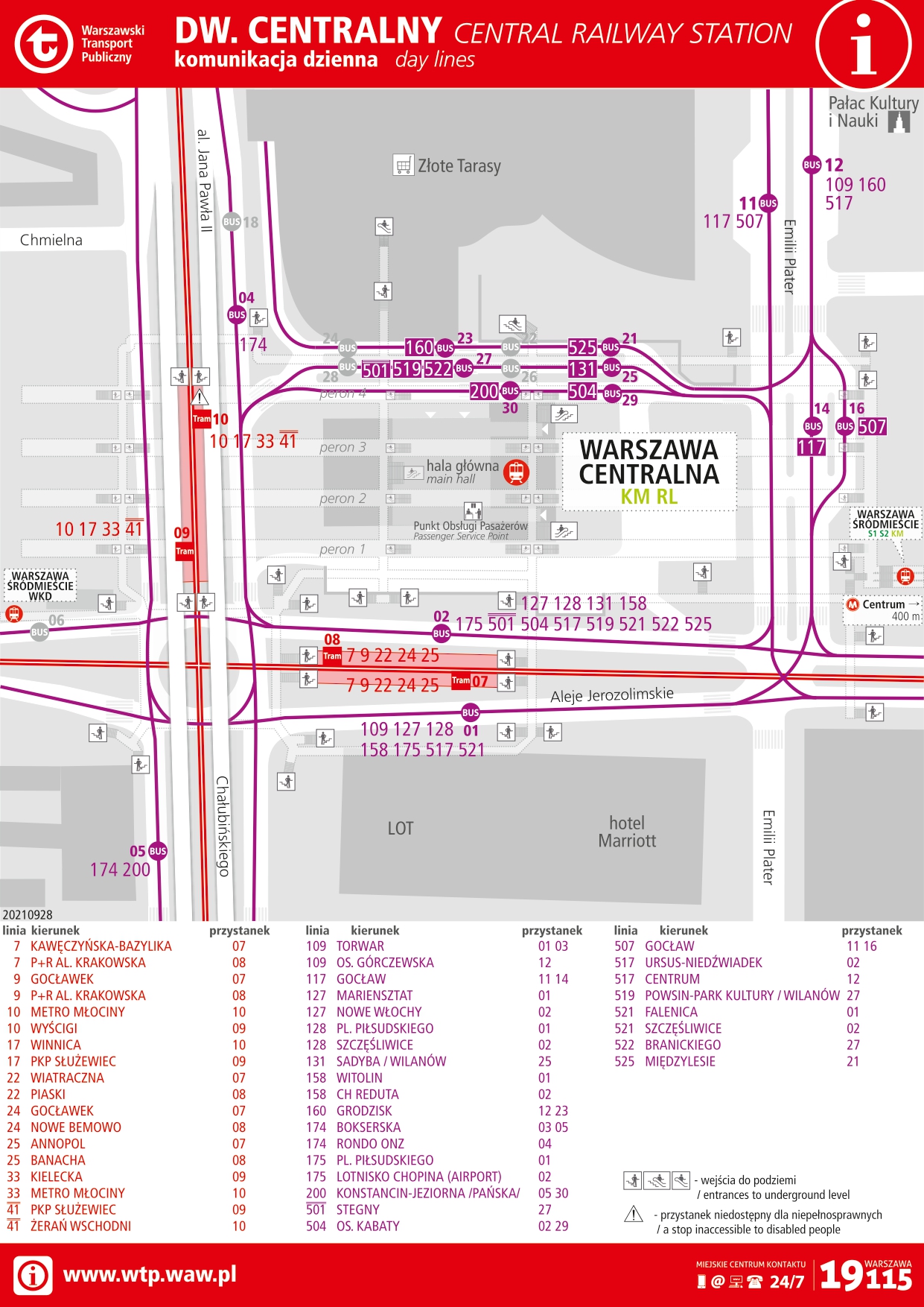 У безпосередній близькості від вокзалу перебувають трамвайні і автобусні зупинки, а також залізнична станція Варшава Середмістя, з якої відправляються поїзди, зокрема, у віддалені від центру райони Варшави і в сусідні міста. На відстані близько 400 метрів знаходиться станція першої лінії метро Центрум.
